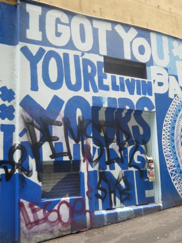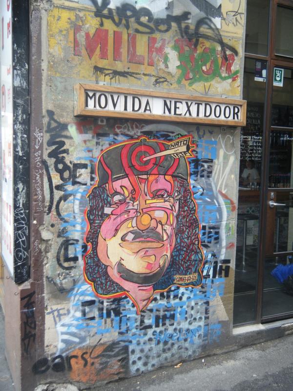 Graffiti in Melbourne February 8, 2012 Billy and Chiz places we've been As I’ve wandered around Melbourne, I’ve taken some picts of various graffiti. There are some pretty cool pieces around the city: [Show slideshow] Billy and Chiz