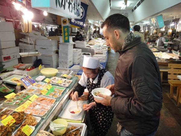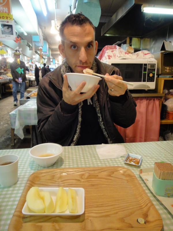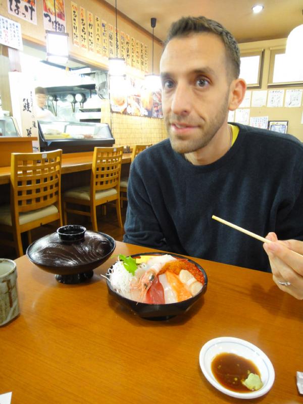 In addition to Chiz’ uncles amazing food, we also went to my favorite sushi place. It is a fish market where you can buy a bowl of rice and fresh sashimi right from the vendors! It is called a noke-don and I love it! We ate there a few times while we were there – but I think I could eat there every day! I also discovered my new favorite sashimi, sujiko. It is salted baby salmon eggs still in its sack. WOW!